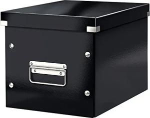 Click & Store Aufbewahrungsbox mit Deckel Mittel-Groß, Würfelbox für Regale im Wohnzimmer oder Büro, Transportbox aus 80 % recycelter Premium-Hartpappe, Stabile Metallgriffe, Schwarz, 61090095