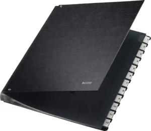 Pultordner, A4, 24 Fächer, 24 Plastik-Buchstaben-Taben mit Einsteckschildern, 6 Sichtlöcher, Schwarze Hartpappe, Schwarz, 58240095