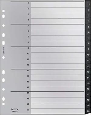 Register für A4, Deckblatt und 20 Trennblätter, Lochrand und Taben verstärkt, Grau, 100% Recyclingkarton, Blauer Engel Siegel, 60960085