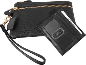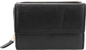 Damen-Geldbörse Echtleder RFID Safe Portemonnaie 15,5 x 10 cm Querformat 3000298 (Schwarz)