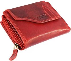 Damen – Geldbörse Echt Leder Leder RFID Safe 12,5x10 cm 3000092 (Rot)