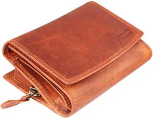 Damen – Geldbörse Echt Leder Leder RFID Safe 12,5x10 cm 3000092 (Braun)
