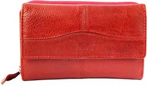 Damen - Geldbörse Echt Leder Portemonnaie RFID Safe 15 x 10 x 3,5 cm 3000286 (Rot)