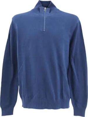 Herren Troyer Pullover Pulli Mock Zip Feiner Glattstrick Petrolblau XL
