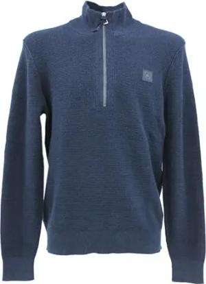 Herren Troyer Pullover Pulli Mock Zip Feiner Jaquardstrick Petrolblau Melange M