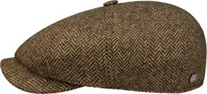Carlsen Wool Herringbone Flatcap Klassische Form Herren Fischgratmuster Made in EU Herbst Winter beige-braun 62 cm