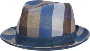 Player Karo Stoffhut Pork-Pie-Design Kariert Mehrfarbig Made in Italy Herren Frühjahr Sommer blau M (56-57 cm)