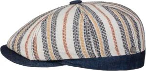 Winford Driver Flatcap Schiebermütze Leinen Made in EU blau-beige L (58-59 cm)