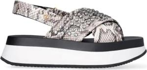 LUI.JO Plateau-Sandalen mit Schlangen-Design, gekreuzte Riemen mit Nieten, zweifarbige Sohle in Weiß und Schwarz, silber, 40 EU