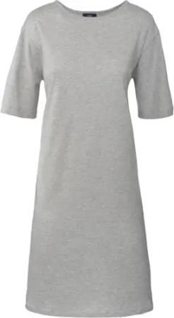 Berit | Nachthemd - Fein umsäumter Ausschnitt, Weit geschnittene Ärmel, Seitenschlitze, Midi-Länge (L, Grey Melange)