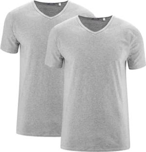 Dean | T-Shirt, 2er-Pack - Bio-Baumwolle, Single Jersey, V-Ausschnitt, Einsatz als Unterhemd, Doppelnahtsaum (, Grey Melange)