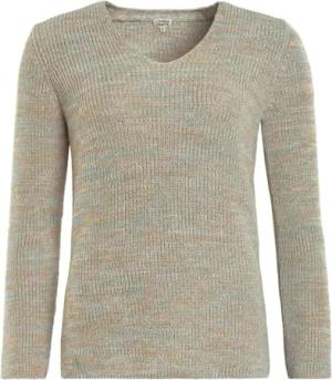 Olena | Pullover - Sommer-Pullover im attraktiven Mouliné-Dessin, V-Neck-Ausschnitt, Seitenschlitze, vielseitig kombinierbar, aus Bio-Baumwolle (M, Lagoon/Apricot)