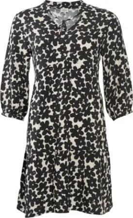 Omara | Kleid - Sommerkleid, ECOVERO Material, modisch weit geschnitten, trendiges Druckmotiv, Raffungen, tiefer V-Ausschnitt, dekoratives Bindeband