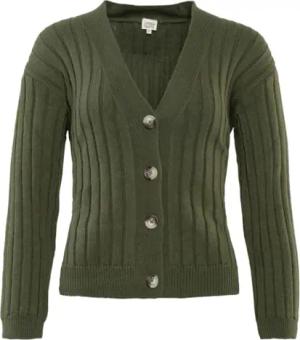 PIRALA | Strickjacke - Fein gestrickt mit Streifenstruktur, Bio-Baumwoll/Wollstrick, Große Knöpfe, Gerippter Strick, Perfekte Ergänzung für Winter Outfits