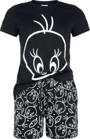 Schlafanzug - Tweety Outlines - S bis XXL - für Damen - Größe L - schwarz - EMP exklusives Merchandise!