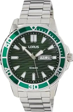Herren Analog Quarz Uhr mit Edelstahl Armband,Silber/Grün