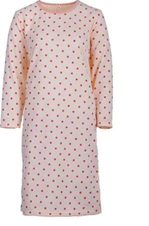Nachthemd Damen Langarm M-2XL Blüten Knöpfe Baumwolle Leicht Schlafshirt Punkte, Farbe:apricot, Größe:XXL