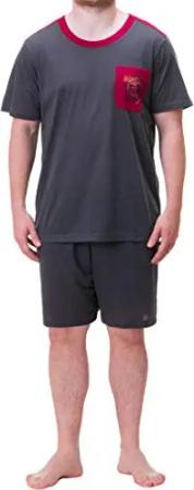 Henry Terre Herren Pyjama Shorty Kurze Hose Schlafanzug Set, Farbe:Grau, Größe:3XL