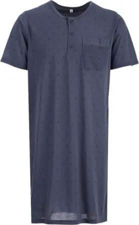 Herren Nachthemd Kurzarm Punkte Rundhals Knöpfe Tasche, Farbe:Navy, Größe:L