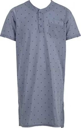 Herren Nachthemd Kurzarm Punkte Rundhals Knöpfe Tasche, Farbe:anthrazit, Größe:M