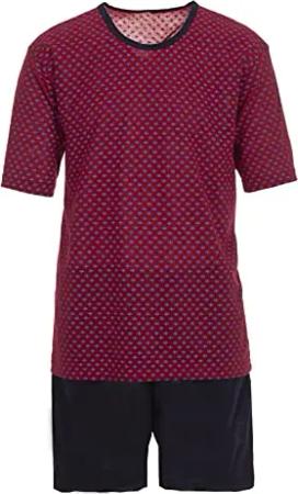 Herren Pyjama Kurzarm Shorty T-Shirt Schlafanzug, Farbe:Bordeaux, Größe:M