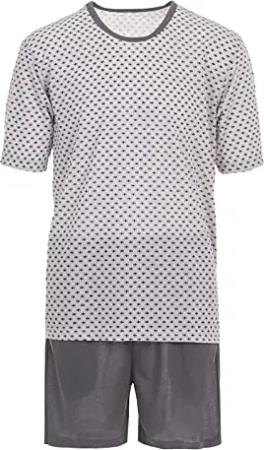 Herren Pyjama Kurzarm Shorty T-Shirt Schlafanzug, Farbe:Grau, Größe:XL