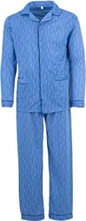 Herren Pyjama Set Vintage Langarm Schlafanzug Baumwolle, Farbe:blau, Größe:3XL