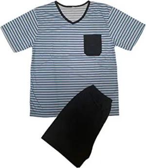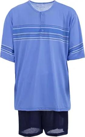 Herren Pyjama Set 2 TLG. Shorty Streifen Übergröße, Farbe:blau, Größe:4XL