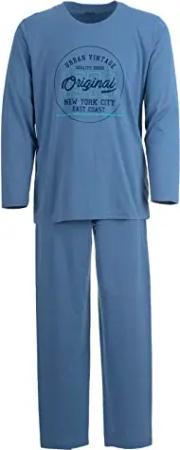 Herren Pyjama Set Vintage Langarm Schlafanzug Baumwolle, Farbe:blau, Größe:M