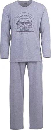 Herren Pyjama Set Vintage Langarm Schlafanzug Baumwolle, Farbe:grau, Größe:M