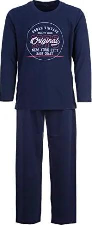 Herren Pyjama Set Vintage Langarm Schlafanzug Baumwolle, Farbe:Navy, Größe:L