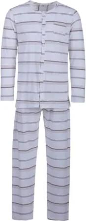 Herren Pyjama Streifen Muster Langarm Schlafanzug Baumwolle durchgeknöpft M-2XL, Farbe:grau, Größe:L