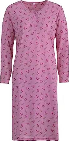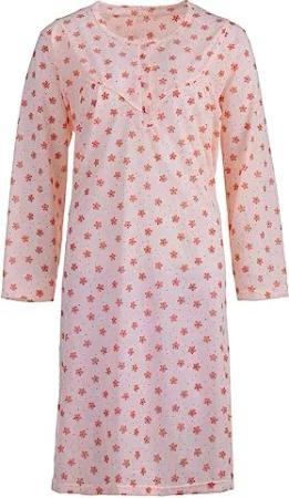 Nachthemd Blumen Damen Langarm Schlafshirt Knöpfe Blüten M-2XL, Farbe:Altrosa, Größe:XL