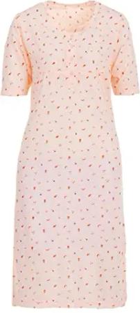 Nachthemd Damen Kurzarm Früchte Design Raffung M-2XL Knopfleiste Schlafshirt, Farbe:apricot, Größe:L