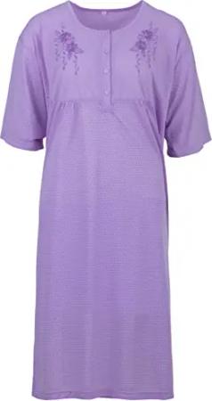 Nachthemd Damen Kurzarm Punkte Design mit Stickerei Knöpfe 3XL-6XL Knopfleiste Schlafshirt Übergröße, Farbe:Flieder, Größe:3XL