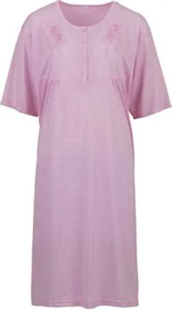 Nachthemd Damen Kurzarm Punkte Design mit Stickerei Knöpfe 3XL-6XL Knopfleiste Schlafshirt Übergröße, Farbe:rosa, Größe:4XL
