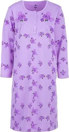 Nachthemd Damen Thermo Langarm Blumen Winter Knöpfe Größe M L XL XXL, Größe:XL, Farbe:Flieder