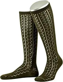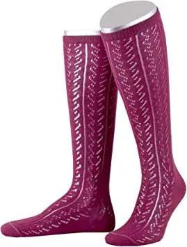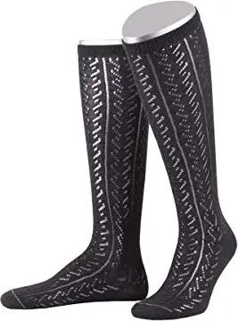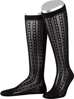 Damen Damenkniestrumpf mit feinem Ajourmuster in 2 Farben Trachtenstrümpfe, Schwarz (Schwarz 01), 38 (Herstellergröße: 38-40)
