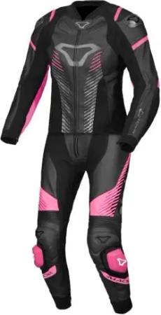 Unisex Tronniq Perforiertes Motorradlederkleid Overall, Schwarz/Fuchsia, 36