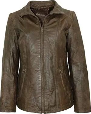 Damen Lederjacke Lammnubuk Leder braun antik Größe 42