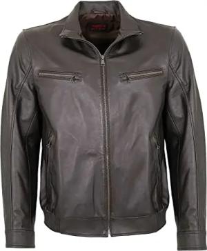 Herren Echtleder Lederjacke Blouson Lammnappa Dunkelbraun Größe 58