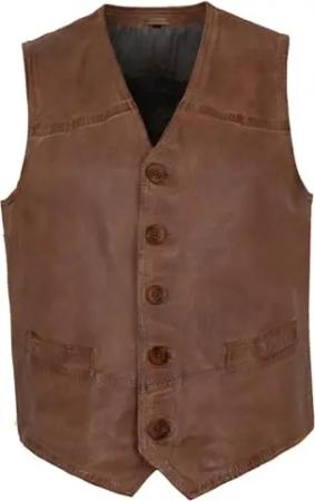 Herren Lederweste Lammnubuk braun antik Größe 50
