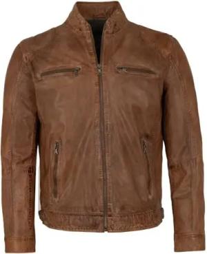 Herren Lederjacke Lammnappa cognac