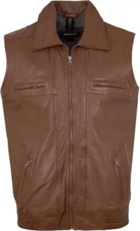 Herren Lederweste Lammnappa Cognac Größe 52