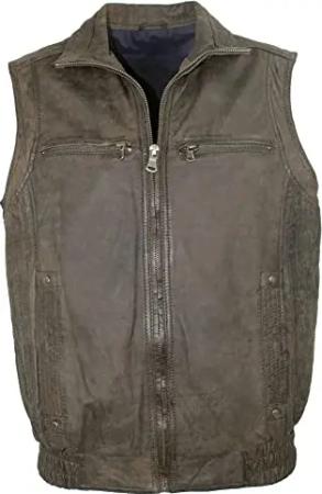 Herren Echtleder Lederweste Lammnubuk Olive Größe 52