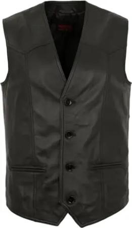 Herren Lederweste, Schwarz, Knöpfe mit V-Ausschnitt, Nappaleder, Schwarz, 46, Schwarz, 46