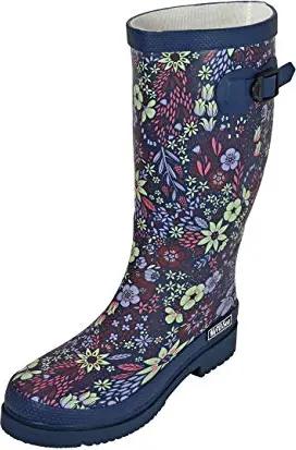 Damen Gummistiefel Flower Blumenprint Langschaft, Größe:42 EU