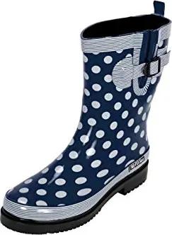 Damen Gummistiefel Ocean Halbschaft, Dunkelblau mit weißen Punkten, 39 EU
