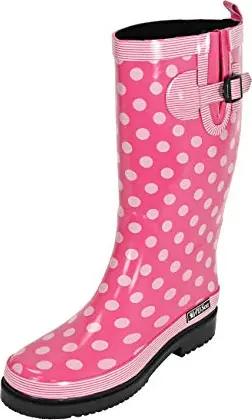 Damen Gummistiefel Ocean High Langschaft, Pink mit weißen Punkten, 37 EU