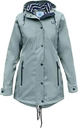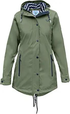 Damen Regenmantel Friesennerz 620 | halblanger wasserdichter Regenparka | winddicht mit maritimen, weiß/blauen Innenfutter, Oliv, Größe:38